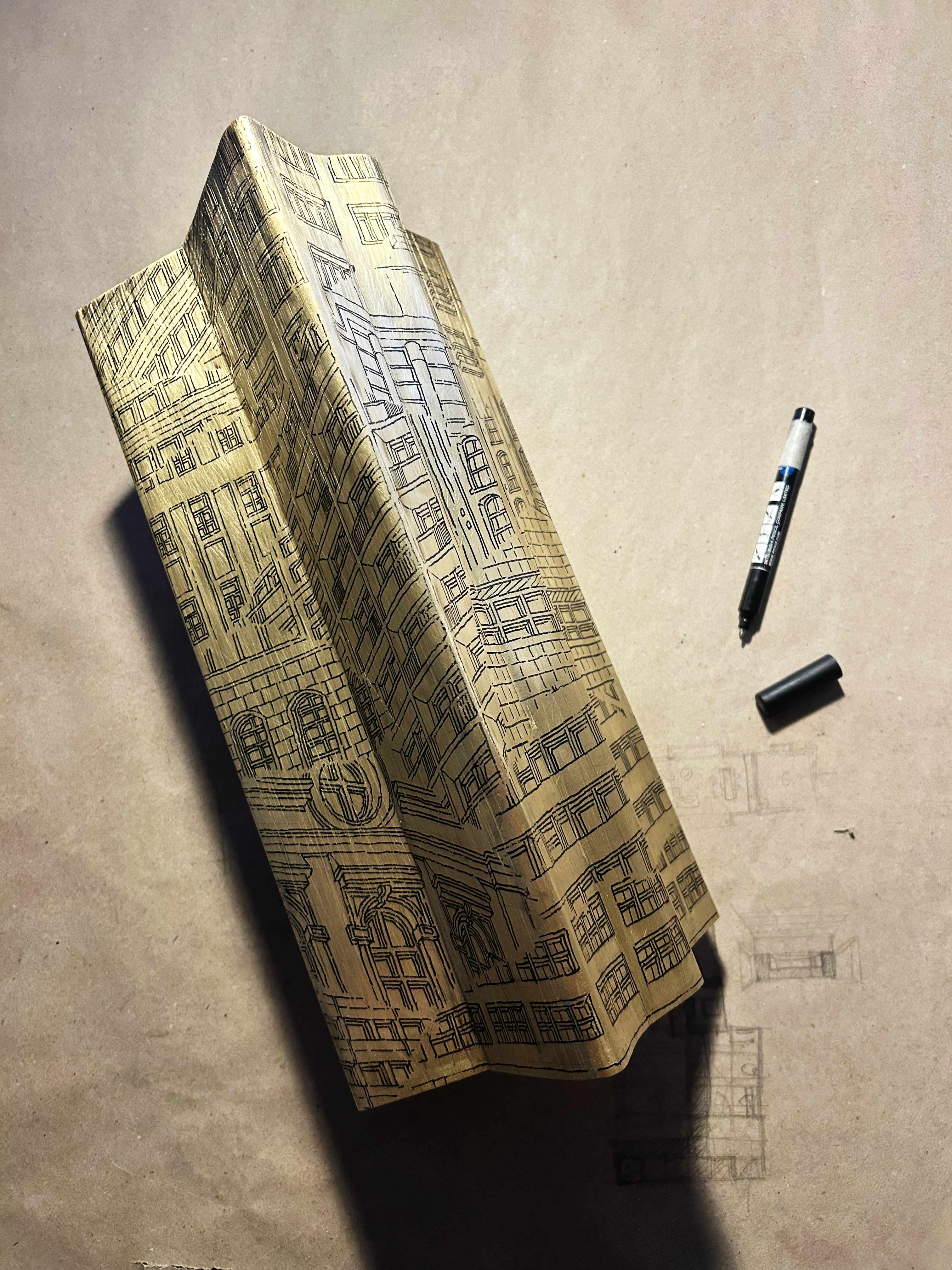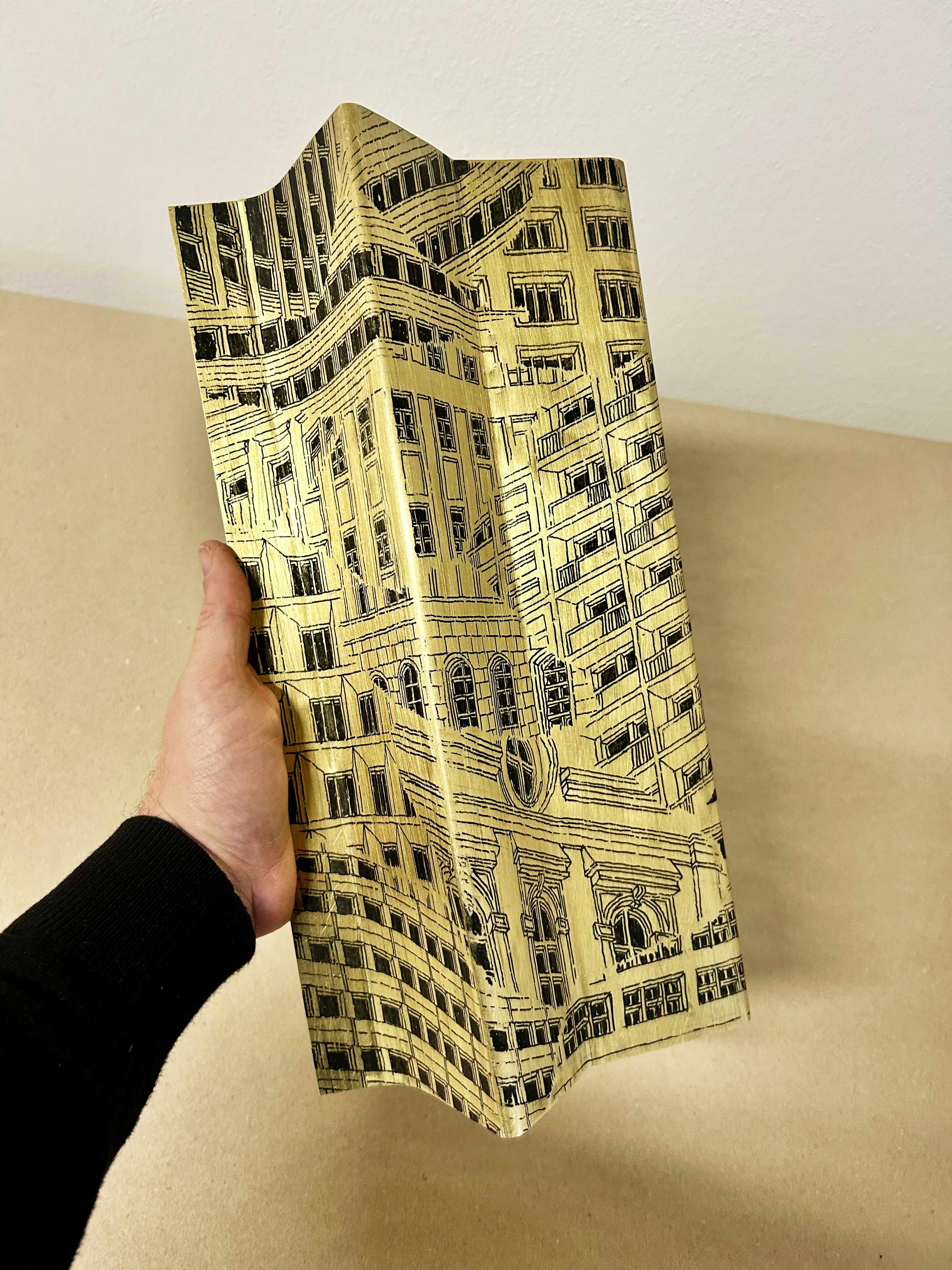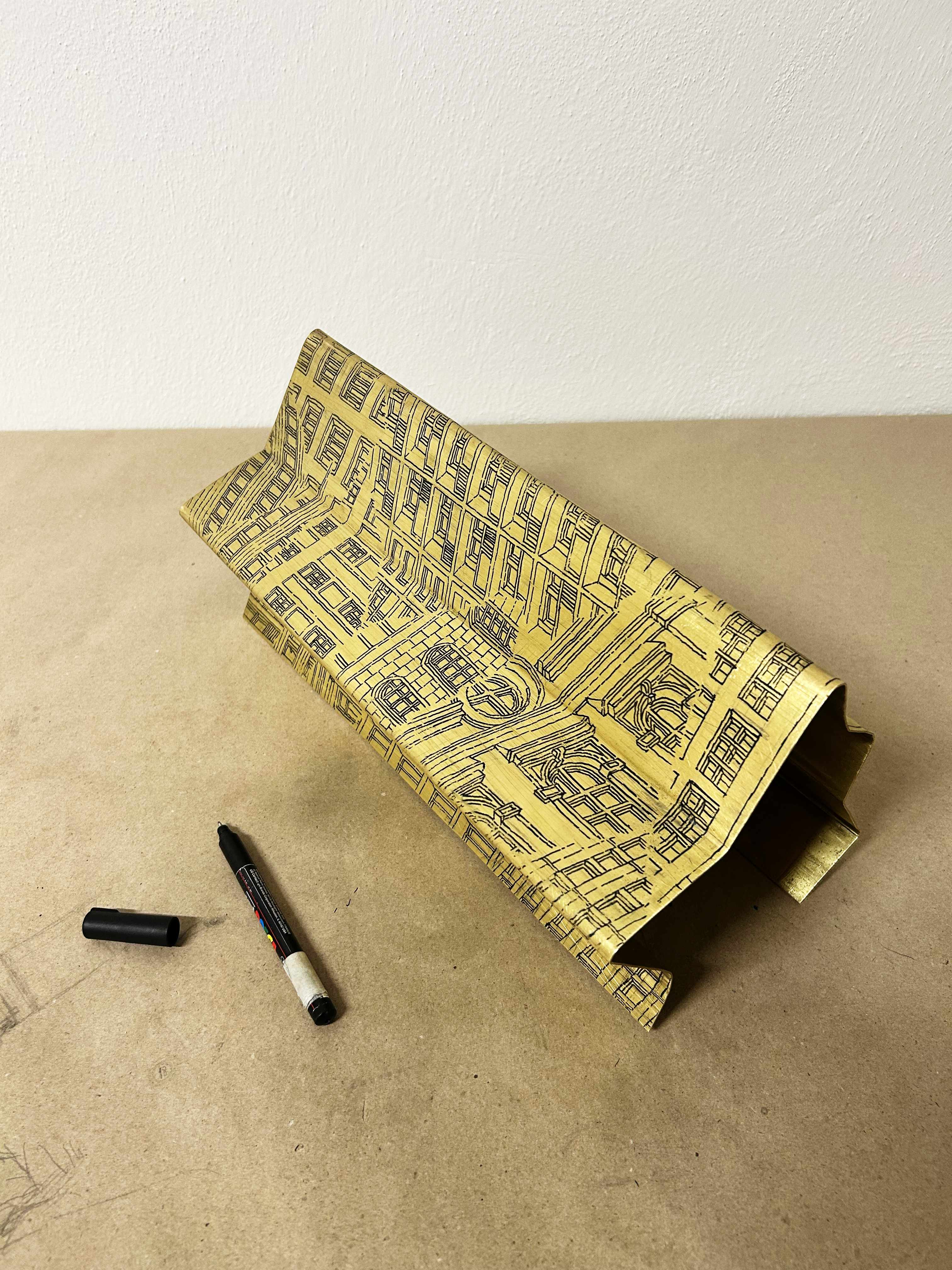 For this program, I experimented drawing on a folded brass. Working on a artwork that reflected on the city’s urbanscape with a focus on the Modernist heritage of Trenčin.